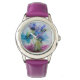 Farbenfrohe blaue Lila rosa grüne Blumenkunst Armbanduhr