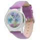 Uhr, Kinderuhr aus Edelstahluhr mit lila Lederarmband