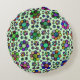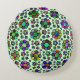 Dieses knisternde Rundkissen hat ein Retro-Blume-Muster mit hellen gefärbte Krawatten. Das niedliche Design besteht aus verschiedenen Blume in einem Regenbogen aus Schattierungen, um ein lebendiges Design zu bilden. Es macht ein hübsches Kissen. Die hellgrüne Hintergrundfarbe ist auf beiden Seiten individuell einstellbar.