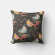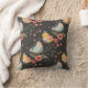 Auf diesem niedlichen Kissen sind helle Bilder von kleinen Vögeln im bohischen Stil, die auf Zweigen zusammengeklebt sind, zu sehen. Neben den goldfarbenen, blauen, roten und bräunlichen Vogelbildern sind rosa Blume und grüne Blätter zu sehen. Alles ist auf einem dunkelkohlegrauen Hintergrund platziert, und beide Seiten des Kissens haben das gleiche Bild.