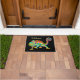 Originelles, lustiges und farbenfrohes Design einer männlichen Panther Hamel Eon-Eidechse von der Designerin Carolyn McFann von Two Purring Cats Studio auf einer individuell anpassbaren, hochwertigen Türmatte für Reptilienfans!