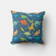Farbenfrohe Dinosaurier-Silhouette. Tyrannosaurus Rex, Titanosaurier, Triceratop, Raptoren, Ankylosauren, Dino-Birds, Stegosaurus, Apatosaurus, Pteranodon und mehr in einem farbenfrohen Muster in blauem Hintergrund, und Dinosaurier in grün, blau, gelb und orange.