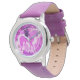 Uhr, Kinderuhr aus Edelstahluhr mit lila Lederarmband