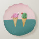 Farbenfrohe Eiscreme Cones Cactus Pink Flamingos Rundes Kissen