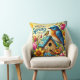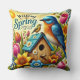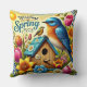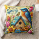 Farbenfrohe Frühlingsszene mit Vögeln, Vogelhaus Kissen