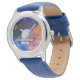 Kinderuhr aus Edelstahl mit blauem Lederarmband