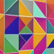 Diese Tapete weist ein Muster von lebhaften und bunten geometrischen Formen auf.