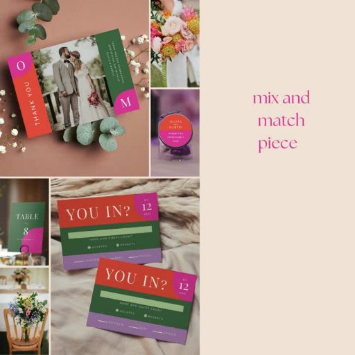 Beginnen Sie Ihre Hochzeit mit diesem farbenfrohen Einladungs-Design auf einen kühlen und hellen Start. Dieses Design wird definitiv den Ton für FUN Set! Dieses Design zeichnet sich durch geometrische Farbblöcke aus, darunter lebhafte Orange, Magenta, Rosa, Smaragdgrün und lila. Ihre Gäste werden begeistert und begeistert sein, diese Einladung zu erhalten, perfekt für jede farbenfrohe Hochzeitsfeier vom Sonnenaufgang des Gartens bis zum tropischen.