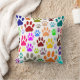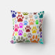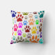 Überall drucken Bilder von Hundepfoten. Farbvolles Design im Cartoon. Kissen für den eigenen Gebrauch. Geschenke Idee für Menschen aller Altersgruppen, die Liebe Hunde.