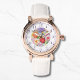 Farbenfrohe Imitate Stickereien Floral Stilvolle Frauen Uhren mit einem modernen, bunten Imitat Stickerei Blumenmuster in Rosa, lila, Orange und Rot auf einem pastellgrünen Hintergrund. Erstellt von Evco Studio www.zazzle.com/store/evcostudio