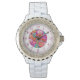 Farbenfrohe Imitate Stickereien Floral Elegant Womans Uhren bietet eine trendige farbenfrohe moderne Imitate Stickerei Blumenmuster in Rosa, lila, Orange, Blau und Gelb. Erstellt von Evco Studio www.zazzle.com/store/evcostudio