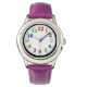Uhr, Kinderuhr aus Edelstahluhr mit lila Lederarmband