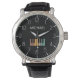 Uhr, Vintage Männeruhr mit schwarzem Lederarmband