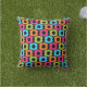 © Sozialite Designs. Mit diesem farbenfrohen und trendigen Musterkissen fügen Sie Ihrem Wohnbereich im Freien einen Farbtupfer hinzu.