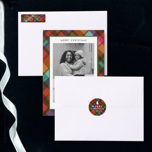Farbenfrohe, moderne Karierte Foto Weihnachten