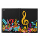 Ein ideales Geschenk für den Musikliebhaber oder Musiker mit einem auffälligen Design mit geraubten musikalischen Noten und einem großen Treppenschacht in den Farben des Regenbogens auf einem zeitgenössischen schwarzen Hintergrund.