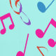 Farbenfrohe Musical Notes Design-Tapete mit anpassbarer Hintergrundfarbe.