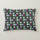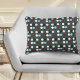 Ein cooles Akzent Kissen in dunkelgrün, gemustert mit bunten Polka-Punkten.