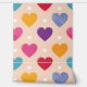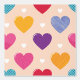 Ein lebendiges und fröhliches, nahtloses Muster mit bunten Herzen im Stil der Pop-Kunst, mit strukturierten Designs in Rosa, Gelb, lila, Blau und Rot, ergänzt durch kleine weiße Herzen auf einem weichen pfirsichfarbenen Hintergrund. Perfekt für die Gestaltung, die Tapeten oder das Kunsthandwerk des Valentinstag.
