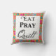 Fügen Sie eine Liebe von quilting mit diesem einzigartigen Kissen für diejenigen, die Liebe quilting. Die Worte "Eat Pray Quilt" sagen alles für eine Kugel, die Sie mit diesem dekorativen Kissen zeigen können. Diese Wörter werden in einem farbenprächtigen Quilt Block Art Ränder auf einem weißen Hintergrund zentriert. Die Farben Rot, Rosa, Gelb, Orange, Türkisblau und Grün. Diese originale Kunst wurde von dem Stoffdesigner Phyllis Dobbs entworfen und koordiniert sie mit anderen Produkten in diesem Laden. Die Grenze umfasst beliebte Blöcke wie die Blockhütte, den Stern, das Quadrat in einem Quadrat und andere, sowie einen applique Blume Block.