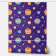 Nahtlose Muster mit lebhaften Planeten, leuchtenden Sternen und anderen kosmischen Elementen Set vor einem dunkelsternigen Hintergrund, das ein spielerisches und fantasievolles Weltraumthema hervorruft.