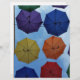 Ein Dach aus bunten Regenschirmen unter dem klaren Himmel