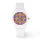 Eine wunderschöne, helle White Sporty Wristwatch mit einem farbenfrohen Muster aus Erdbeeren, Himbeeren, Orangen und Limetten auf einem tiefblauen, grün strukturierten Hintergrund. Als Teil der Posh & Painterly 'Summer Fruits' Kollektion können Sie diese Armbanduhr ganz einfach anpassen, indem Sie die Summer Fruits Patternfliese drehen oder verkleinern.