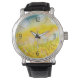 Uhr, Vintage Männeruhr mit schwarzem Lederarmband