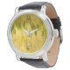 Uhr, Vintage Männeruhr mit schwarzem Lederarmband
