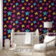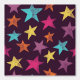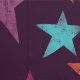 Shine hell mit dieser lustigen gemusterten Tapete. Es zeichnet sich durch ein lustiges Muster gemalteter Sterngrafiken aus, mit einem bedrückten Stil in hellblau, orange, gelb, magentafrosa und lila lila vor einem dunklen lila Hintergrund.