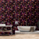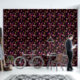 Whimsikale rote Farben und goldene Sterne, die auf schwarzem Hintergrund gefleckt werden