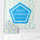 Junge Geburtstag mit blauen, gelben und grünen Sternen. Anpassbar für jedes Alter. Bildvorlage über Pixabay, lizenziert unter CC0 und muss durch Ihr eigenes Foto ersetzt werden