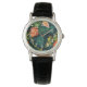 Farbenfrohe tropische Blätter und Hibiskus-Blume | Armbanduhr