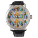 Diese Herrenuhr hat ein modernes Design von sich überlappenden Vögeln in Blume Power Farben. Woll verschiedene Farben? Nachricht.
