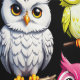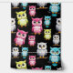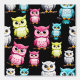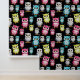 Niedliche farbenfrohe rosa, gelbe, blaue und weiße Kawaii Uhu-Oberflächenmuster Design Auf einer schwarzen Hintergrundtapete