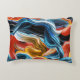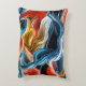 Farbenfrohe Wellen und Strömungen in Blau, Orange, Schwarz und Weiß auf einem Kissen.