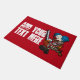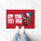 Begrüßen Sie Ihren Halloween-Besucher mit dieser Türmatte für Horror-Fans, die einen farbenfrohen, manischen Clown mit roter Nase und scharfen Zähnen mit einer Kettensäge vorweisen können. Ein makabre Karikaturenfigur für Halloween- oder Horror-Fans, in der bösen Clowntradition. Ändern Sie den Standardtext in Ihre bevorzugte Nachricht oder Beschriftung.
