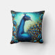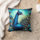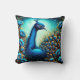 Farbenfroher Pfau unter den blauen Blumen Kissen