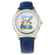 Kinderuhr aus Edelstahl mit blauem Lederarmband