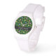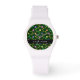 Farbige Blume, grüner Hintergrund, schwarz Armbanduhr