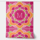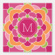Ein kühnes, grafisches Design mit farbenfrohen Rosa- und Grüntönen - mit einer lustigen Blume, um Ihren Namen oder jeden Text hinzuzufügen. Fügen Sie Ihre Initialen zu dieser funky Blumenillustrierung hinzu. Sie können das Monogramm auf eine erste ändern. Ein rosa Hintergrund mit hellgrünen, orangefarbenen und heißen rosa Akzenten.