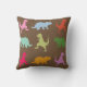 Farbenfrohe Dinosaurier-Silhouetten auf einem Kissen mit Rückenlehne.Passen Sie Ihre Hintergrundfarbe an.