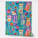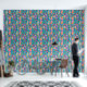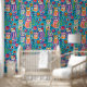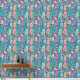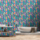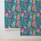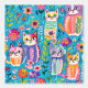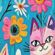 Eine Illustration der volkstümlichen Aquarellkunstkatzen und Blume in Blau, Orange, Rot, lila und hübschen Farbtönen. Fügen Sie mit dieser Schale und Tapete glücklich und skurril in Ihr Zimmer.