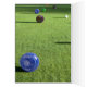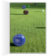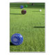 Auf dem Grün sind Rasenschüsseln verschiedener Farben ausgestellt.