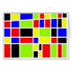 Ein buntes, hartes, geometrisches abstraktes Design, ein wenig erinnert an Mondrain vielleicht, wenn auch anders. Ideal für viele verschiedene Anlässe. Kann auch durch Hinzufügen von Text oder Buchstaben zu den farbigen Formen angepasst werden.