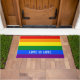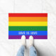 Farbiger LGBT-Regenbogen-Gay Pride-Flag mit benutz Fußmatte