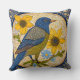 Farbige Abbildung eines Vogels auf einem Ast, umgeben von gelben Blumen und blauen Gängen. Das Kunstwerk zeichnet sich durch ein gepunktetes Muster und eine harmonische Mischung aus Blau, Gelb und Erdtönen aus und schafft so eine fröhliche und lebendige Komposition.