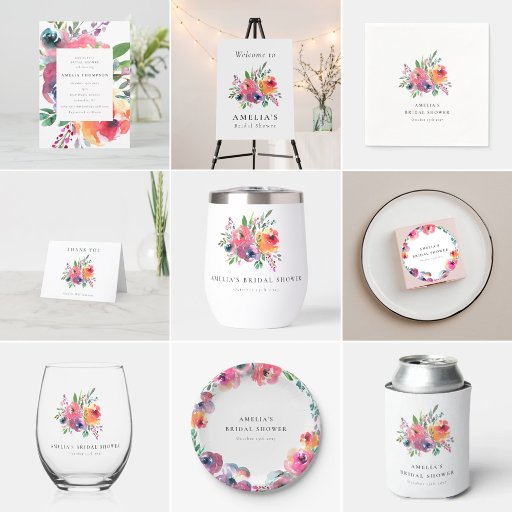 Colorful Watercolor Floral Bridal Shower SuiteDesignt von Opal Ellery