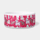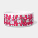 Farbenfrohe rote Hundeschüssel mit vielen Hunden im Cartoon-Stil. Hübsche Ergänzung für jeden Hund.