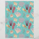 Farbenfrohe Aquarellbilder von Muscheln, Korallen und Unterwasser-Pflanze schaffen ein Muster auf aqua Hintergrund. Eine Seite ist größer
